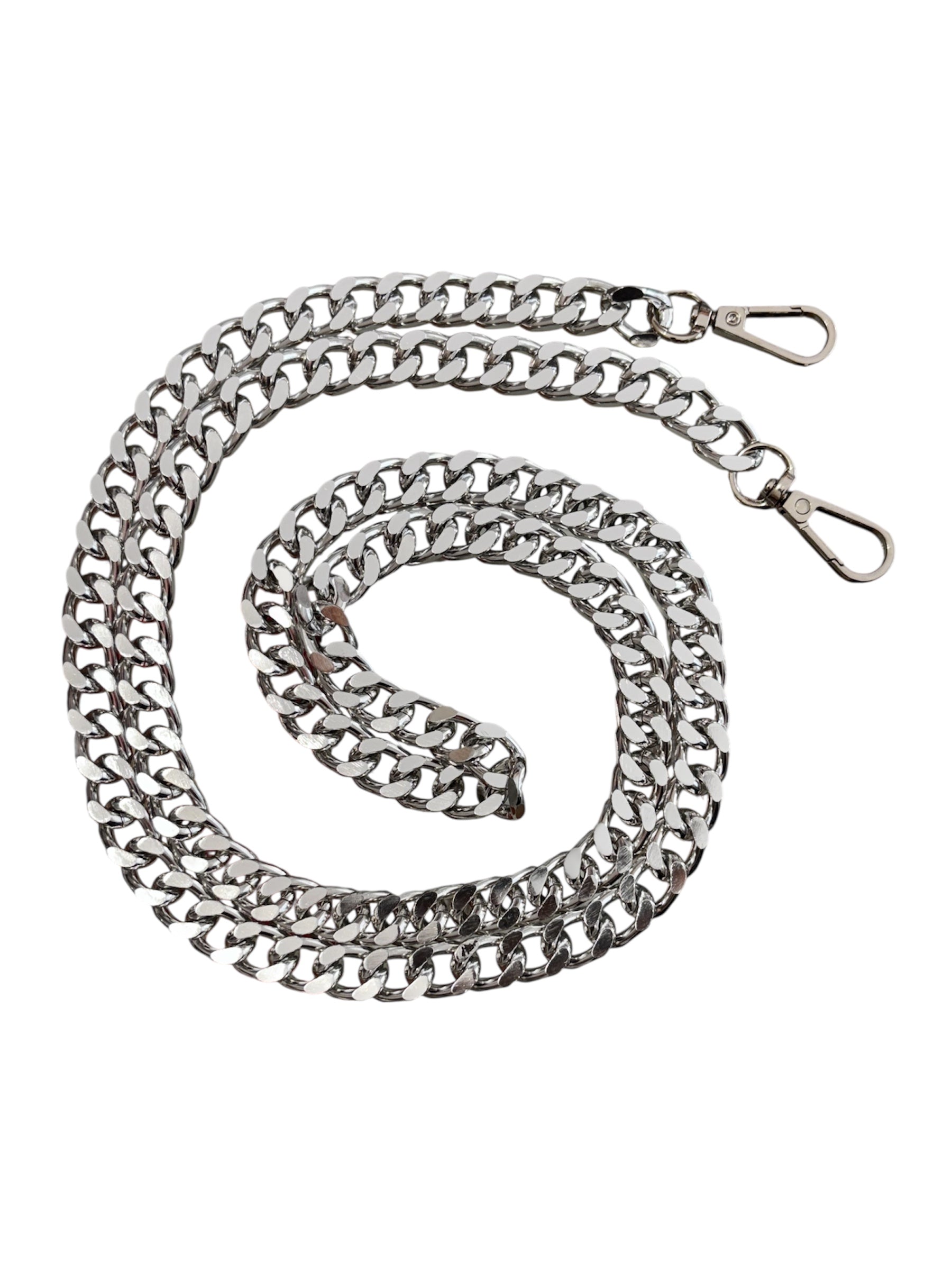 La Catena Maglie Larghe Tracolla per Borsa Art. 1017 è l’accessorio ideale per dare un tocco distintivo alle tue borse. Realizzata in metallo resistente, questa tracolla presenta moschettoni su entrambi i lati per un fissaggio semplice e sicuro. Le maglie larghe donano un’estetica moderna e versatile, perfetta per personalizzare ogni tua creazione con un dettaglio di stile unico. Con una lunghezza di 110 centimetri, offre la misura perfetta per essere comoda da indossare senza compromettere l’eleganza. Trasforma le tue borse in pezzi unici grazie a questa catena funzionale e alla moda.