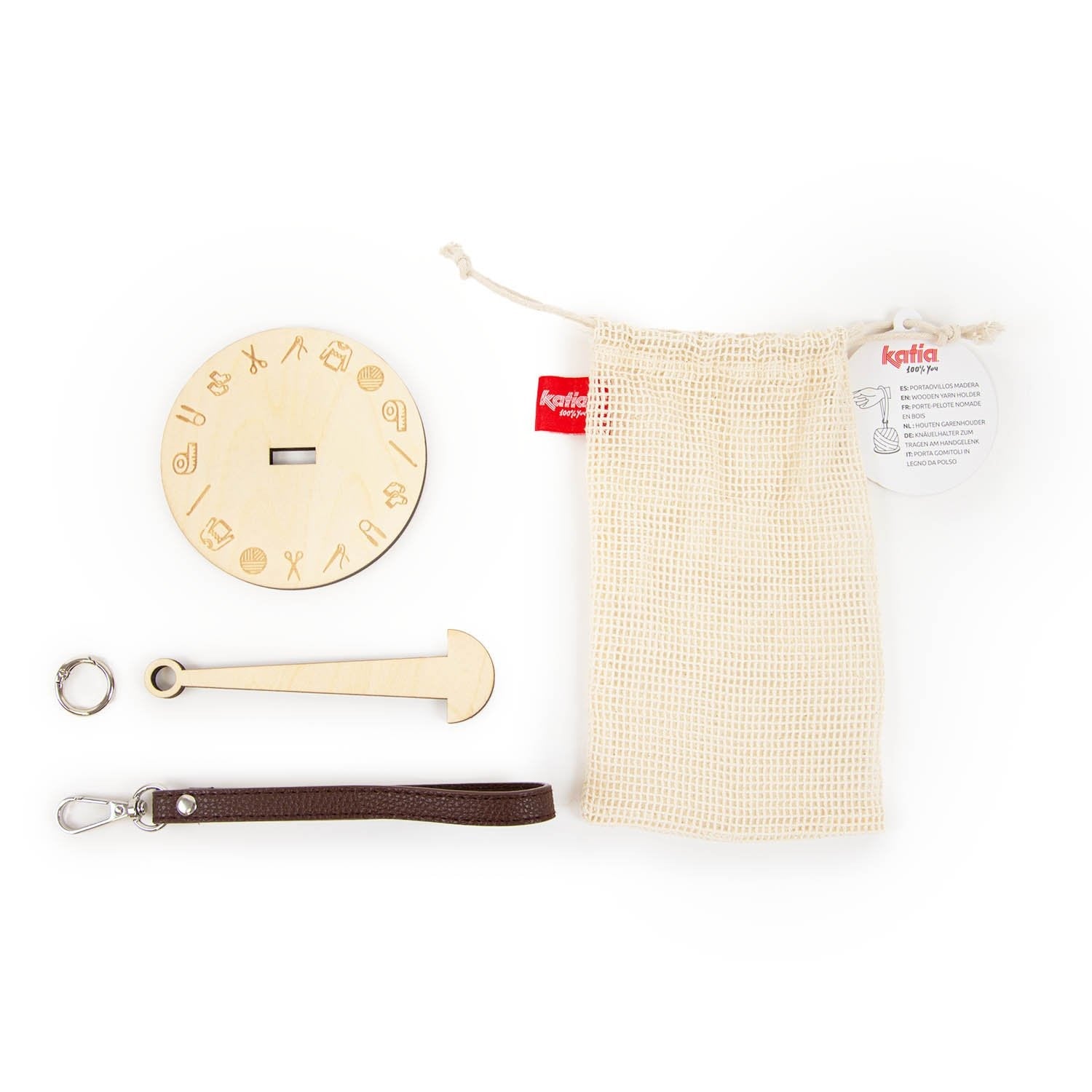 Porta sempre con te il tuo lavoro con questo porta gomitoli in legno inciso con un design esclusivo per Katia. Si indossa comodamente al polso per lavorare a maglia o all’uncinetto ovunque, anche mentre cammini. La struttura smontabile lo rende facile da riporre nella tua borsa da lavoro. Trasforma ogni progetto in un’esperienza più pratica e agile, ovunque tu sia.